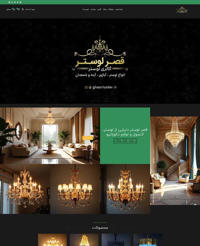 وبسایت فروشگاه قصر لوستر با طراحی حرفهای، امکان خرید و مشاهده محصولات را فراهم کرده است: